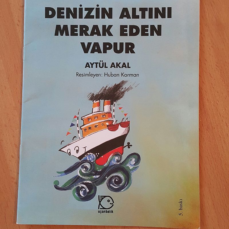 Tudem/ Uçanbalık Yayıncılık´tan çıkan ve Aytül Akal´ın yazdığı masallardan oluşan çok güzel seriler var, sanırım serinin tamamını okuduk Masal´la, bu masallar konulara göre farklı diziler oluşturuyor. En sevdiklerimizi burada paylaşacağım, bugünkü hikayemiz "Denizin Altını Merak Eden Vapur" .