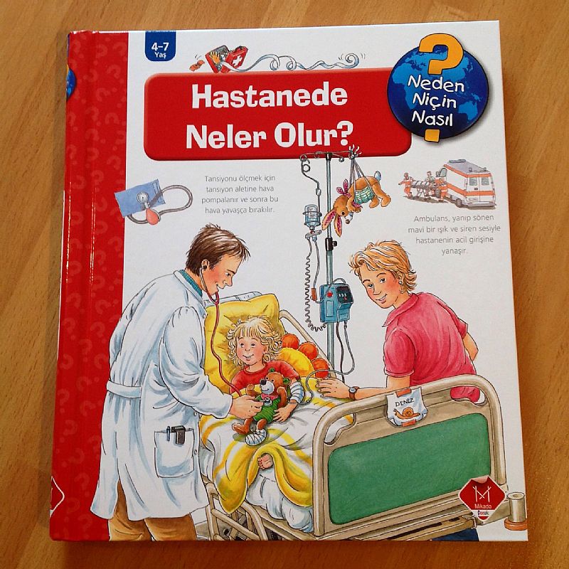 Merhaba, bu sene bizim için bol hastalıklı bir sene oldu... Umarım artık kış biter ve baharla birlikte herkesi daha sağlıklı günler bekliyordur. Daha evvel küçük yaş grupları için Tübitak Yayınları´ndan "Hastanede"ve "Doktorda" kitaplarını paylaşmıştım. Bugün paylaşmak istediğim kitap 4 yaş hatta 5 yaş üzeri çocuklar için Mikado Çocuk´tan "Neden Niçin Nasıl?" Serisinden "Hastanede Neler Olur?" Kitabı.