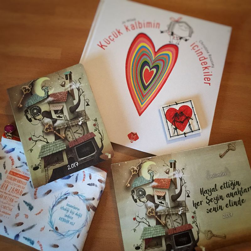 Kitabın yanındakiler ise sevgili Ceyda Düvenci´nin nin tasarladığı Melimelek ajandaları ve çantası, biri bana diğeri ise sürpriz bir arkadaşıma hediye.. Yeni yılda kalplerimize iyilik ve sevgi versin diye.. çünkü bence de "Hayal ettiğim her şeyin anahtarı benim elimde"
