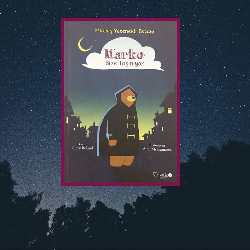 Onun adı "Marko" ve o bir bozayı, üstelik hayvanat bahçesinden kaçıp şehirde bir kapıyı çalıp bir fincan çay isteyecek kadar medeni. Hele kapısını çaldığı evde trombon çalmaktan çocuğuyla pek de ilgilenmeyen uçuk bir anne ve bir ayının eve gelişini son derece doğal karşılayan bir çocuk var ki hikaye bir yandan "yok artık" dedirtirken bir yandan da çok merak uyandırıyor. Pek de sıradan olmadığını anladığınız Marko aynı zamanda pek yetenekli... İşte "Marko Bize Taşınıyor" bizi bu sıra dışı ayı ile tanıştıran ilk kitap! Redhouse Kidz´den yeni çıktı, 6-7 yaş üzeri için çok rahat okunabilir, büyük puntolu ve 64 sayfa.