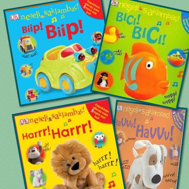 Pearson Yayınlarının "Neşeli Saklambaç" serisi belki de beğendiğim nadir sesli kitaplardan, içi tamamen kapakçıklı ve kapakçıkları açarak her sayfada sesli olanı bulmaya çalışıyorsunuz, Masal bu dört kitap ile birhayli eğlenirdi. Sert karton sayfalı ve epey dayanıklı bu kitaplar, bizden sonra en yakın arkadaşımın kızına bile kaldı?? O yüzden görselleri internetten aldım, 6 ay üstü bebeklere rahatça önerebilirim.