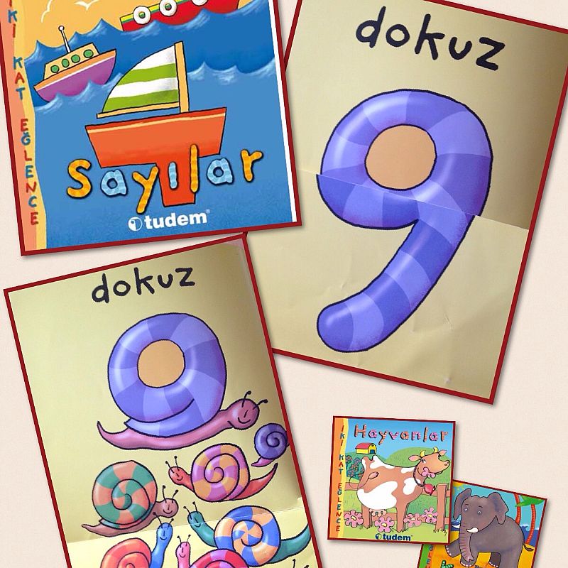 Miniklere 1´den 20 ye kadar sayıları öğretebileceğiniz, Tudem´in "Sayılar" kitabı her sayfada önce sayıyı gösterip, açılınca da o sayı kadar bir nesnenin resimlerini çıkartıyor. Rengarenk ve çok keyifli, sürpriz açılan sayfaları seviyor çocuklar.