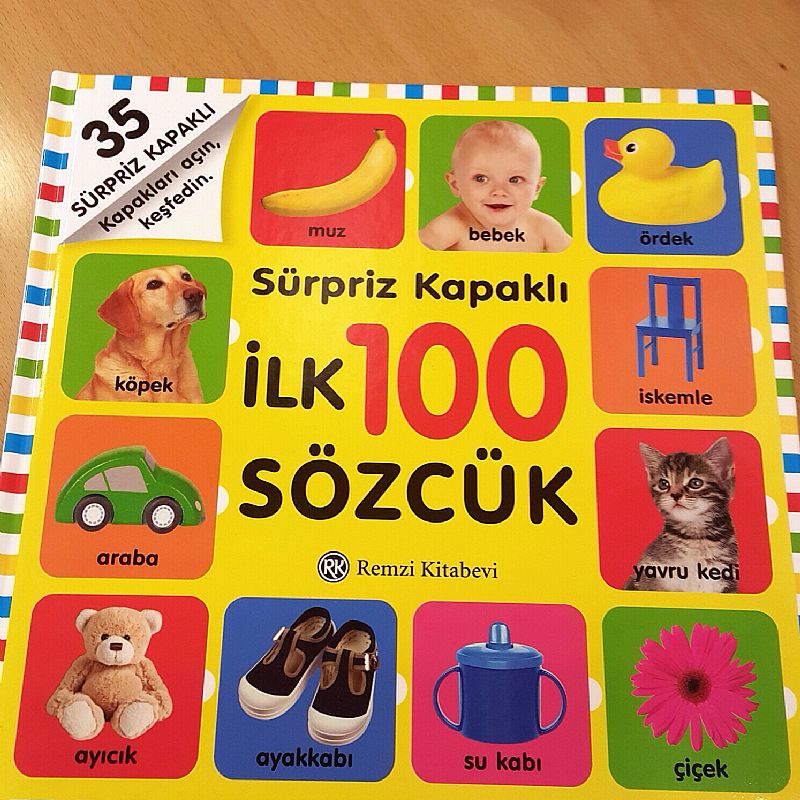Merhaba, güne minikler için bir kitapla başlamak istiyorum. Remzi Kitabevi´nin "Sürpriz Kapaklı İlk 100 Sözcük " kitabı, büyük boyutlu ve çok doyurucu bir kitap. İçinde kapakçıklar var ki bu tür kitapları çocuklar çok seviyor, her sayfada farklı bir temaya ait resimler ve sözcükler yer alıyor.