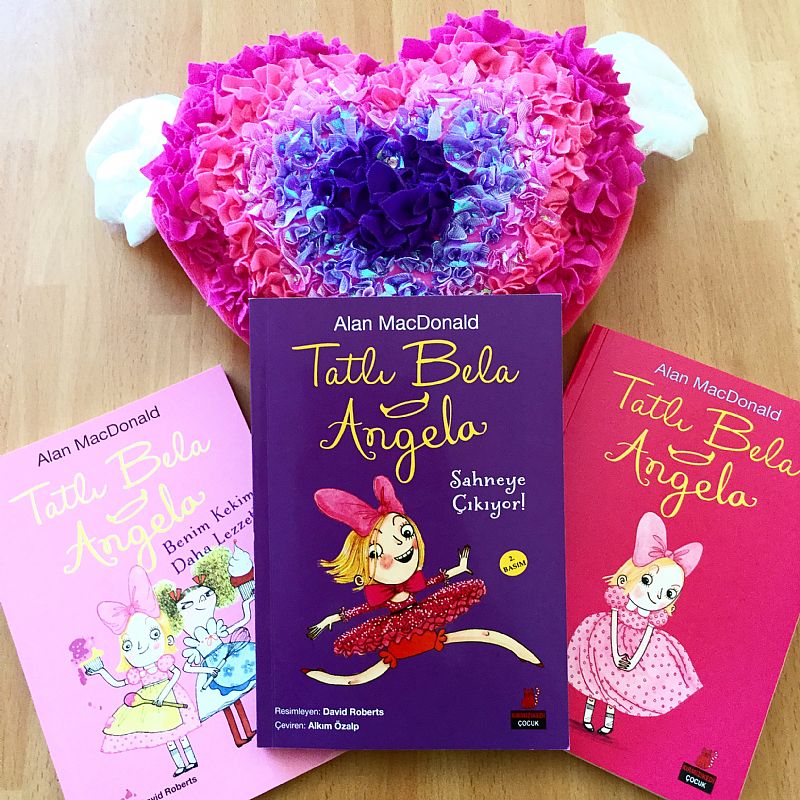 Merhaba ! Artık biraz kendi okuyan çocuklar için tatil önerilerine ağırlık vereceğim. Tatlı Bela Angela serisi Masal´ın yeni favori serisi oldu, renkler ve karakterden dolayı tahmin edeceğiniz gibi daha çok kız çocuklarının hoşuna gidecek türden bir seri. Angela Nicely çok tatlı ve sevimli bir kız çocuğu gibi görünse de ortalığı karıştırmakta gerçekten üzerine yok! Kitapta yer alan karakterlerin soyadları o karakterlerin özelliklerine göre seçilmiş ve Masal buna bayıldı. Şimdilik bu üç kitabını aldık ve şu an üçüncü kitaptayız, Kırmızı Kedi Çocuk´ tan çıkan seriyi özellikle 6-7 yaş ve üzeri muziplikten hoşlanan kız çocuklarına öneriyoruz. Fotoğrafta gördüğünüz yastığı da Masal kendi yaptı, Plush Craft´tan ,çok sevdiği bir etkinlik oldu.