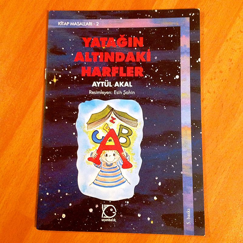 "Yatağın Altındaki Harfler" bugünkü ilk kitabımızın ismi. Uzun zamandır kitap okumayan bir çocuğun kitaplarının okunmamaktan harflerinin dökülüp oyun oynarken, yemek yerken, heryerde karşısına çıkması ve küçük kızın buna çözüm arayışı ile ilgili. Masal´ın küçükken çok sevdiği bir kitap ve kitapların raflarda sıralanmak için değil okunmak için olduğunu çok güzel anlatıyor.