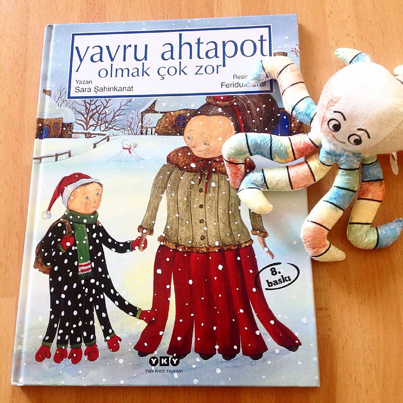 Bugünkü ilk kitabımız Sara Şahinkanat´tan "Yavru Ahtapot Olmak Çok Zor". Minik ahtapot Nino, ahtapot olmaktan hiç hoşnut değil, her sabah sekiz kollu kazağını giymek, sekiz eldiven takmak... canını sıkıyor. Ninonun o sabah okul yolunda yaşadıkları ahtapot olmayı sevmesini sağlayabilecek mi acaba?