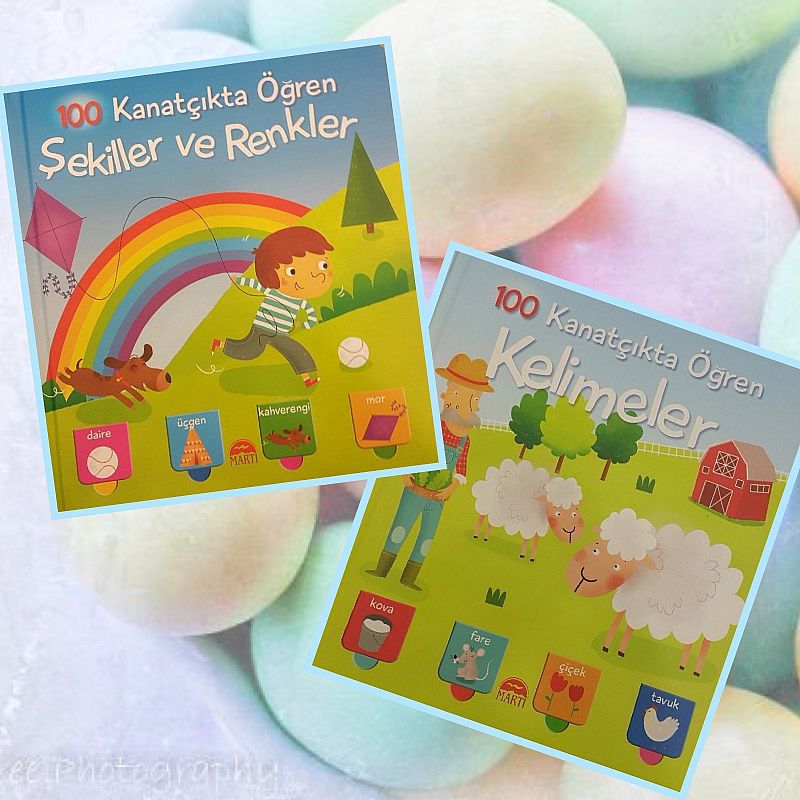 Bugün tanıtmak istediğim kitaplar Martı Yayınlarından Kapakçıklarla Öğren serisinden." Şekiller ve Renkler" ve "Kelimeler" ve fotoğrafta görmediğiniz bir de "Sayılar" ve "Hayvanlar" kitapları var. Kalın karton sayfalı ve içleri bol kapakçıklı. Sayılar ve Şekiller kitabı 2 yaş hatta sizin gözetiminizde 1,5 yaş üzerine bile olur diğer kitap ise biraz faha detaylı 2-2,5 yaş üzerine daha uygun gibi. Kitapların sonunda öğrenilenlerin bir özetinin yer aldığı sayfalar mevcut. Bu kitapları daha evvel Mikado yayınlarından çıkan ama baskısı tükenen İlk Sayılar Kitabı ve İlk Kelimeler kitaplarını bulamıyor iseniz onların yerine de rahatlıkla önerebilirim.