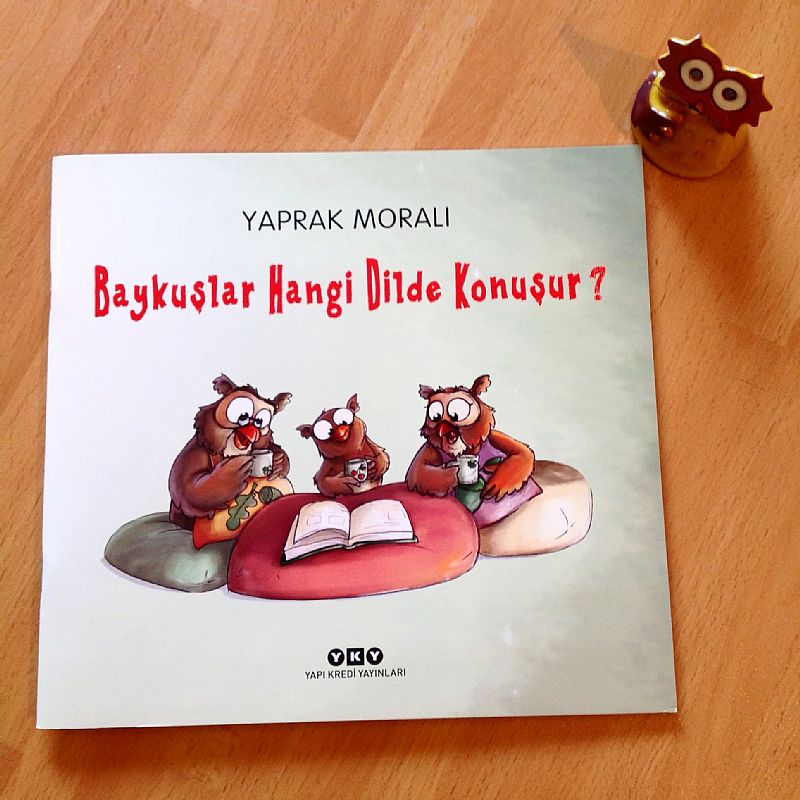 "Yaprak Moralı´nın Yapı Kredi Yayınları´ndan taze çıkan "Baykuşlar Hangi Dilde Konuşur" kitabı aslında dün bahsettiğim, "dünyanın farklı yerlerindeki farklı kültürler ve diller konusu" ile de uyan bir hikayesi. Yavru Baykuş, çok heyecanlıdır çünkü artık büyüdüğü için o akşam ilk kez arkadaşlarıyla dışarıya çıkacaktır. (Biliyorsunuz baykuşlar gündüz uyuyor) Dışarıda arkadaşlarına seslenir ama gelen olmaz...