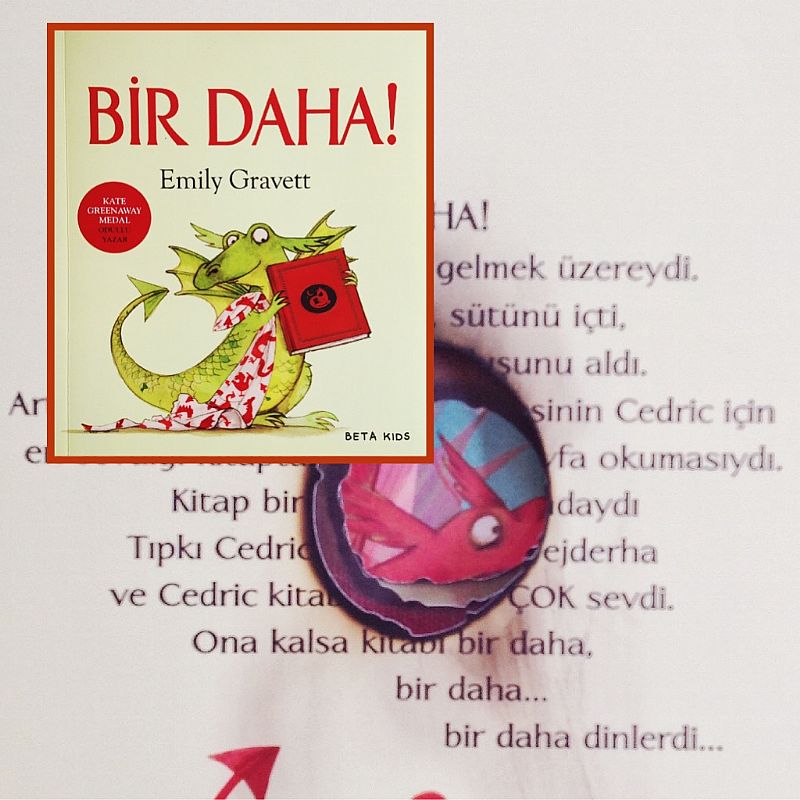 Merhaba! Kate Greenway ödüllü yazar Emily Gravett´dan yeni bir kitap daha var gene Beta Kids Yayınlarından. Hani böyle çocuğunuza bir kitap okursunuz ve o kadar sever ki 853 kez üst üste okutur ya ( sayıyı biraz abartmış olabilirim) hah işte bir de bunu tam uyku öncesi, günün sonunda sizin sabrınız sınırda iken yapar ve bir türlü uyumaz ya işte bu kitabın konusu da aynen bununla ilgili! Tek fark minik bir ejderha dinleyici ve ejderha bedeninde tipik bir anne arasında geçiyor olması.