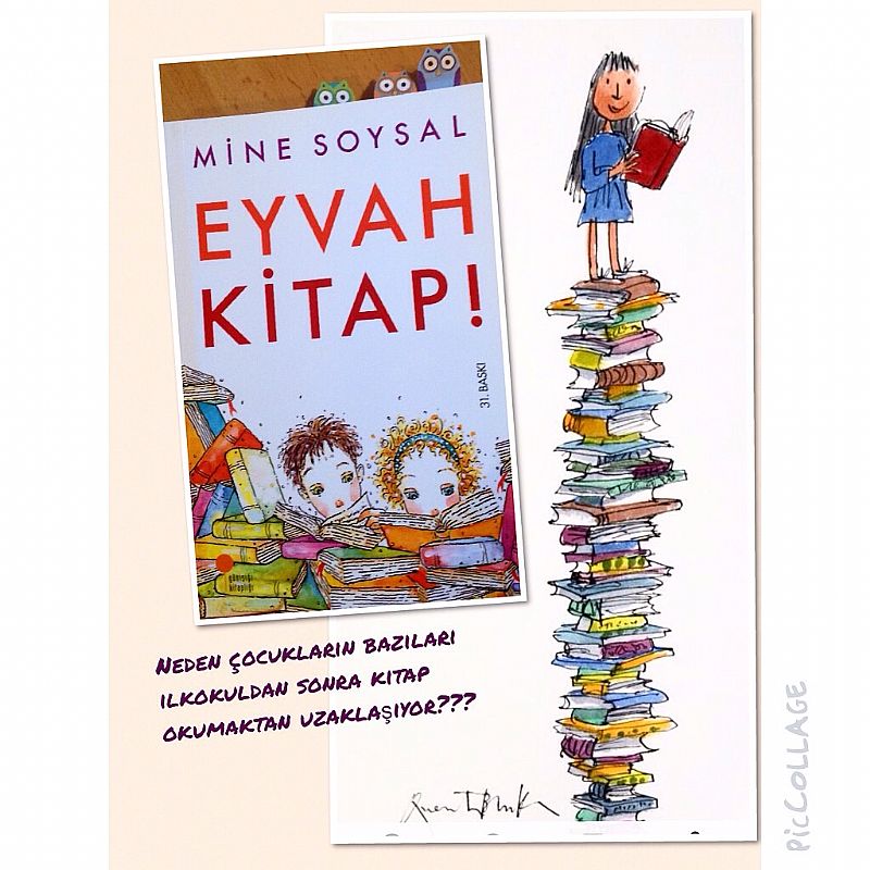 Neden çocukların bazıları ilkokuldan sonra kitap okumaktan uzaklaşıyor? Küçükken çok sevdikleri kitapları artık sadece ödev olduğunda zorunluluk olarak okuyorlar? Birkaç gündür kafamda bu sorular var, hem internetten okudum hem de tesadüfen Mine Soysalın "Eyvah Kitap" isimli kitabına denk geldim ve bir solukta okudum, taşlar biraz yerine oturdu. Önce kitaptan bahsedeyim, Mine Soysal okuma eğilimleri ve kitaplar üzerine sohbet ettiği binlerce ilköğretim ve lise öğrencisinin yorumlarından derlemiş bu kitabı, anne babalar ve eğitimcilerin mutlaka okuması ve konuya çocukların gözünden bakabilmesi için çok güzel bir kitap.