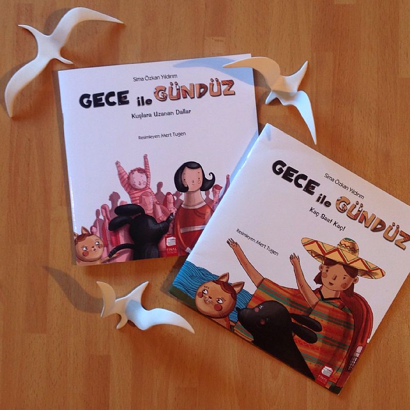 Genç yazar Sima Özkan Yıldırım´ın Gece ile Gündüz serisi ile tanışmamız "Kaç Saat Kaç!" kitabı ile oldu. Ben acaba Masal sevecek mi, e biraz uzun mu falan derken, aldığımız günden beri en az on kez okundu bu kitap. Gece bir köpek, Gündüz ise Kedi, birlikte yaşıyorlar ve bu kitapta Meksika´dan gelen mektup arkadaşları Yolanda´yı karşılama hikayeleri... Haydarpaşa Gar´ının duran saatinden, sahaflara, mısır çarşısından vapurlara uzanan renkli bir hikaye.