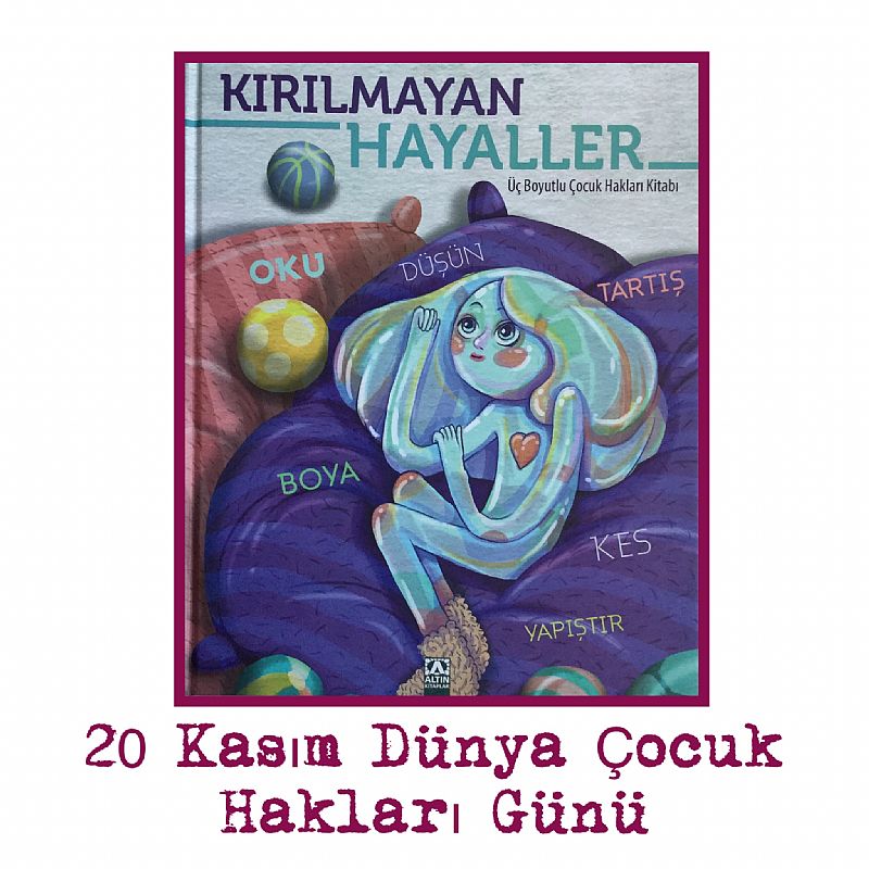 Konuşmamız gereken çocuk hakları çok farklı iken, biz bugünlerde çocukların "çocuk" olma haklarının ellerinden alınmasını tartışıyoruz... Bugün için sakladığım "Kırılmayan Hayaller" Altın Kitaplar´dan çıkan Eskişehir Büyükşehir Belediyesi Çocuk Hakları Birimi bünyesinde sevgili Nilay Yılmaz´ın danışmanlığında hazırlanmış bir imece kitap. Çocuklar Camdan yapılmış Camsu´nun kırılmayan hayallerinin öyküsünü okusun, düşünsün, düşüncelerini çizsin boyasın ve somutlaştırsın diye hazırlanmış bir proje kitap. Kırılmayan Hayaller Projesi hakkında daha detaylı bilgiye www.kirilmayanhayaller.com adresinden ulaşabilir ve proje hakkında daha ayrıntılı bilgi edinebilirsiniz.