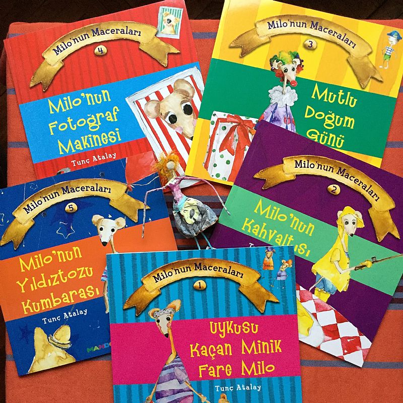 Bundan tam iki sene önce "Gıdıklanan Elma", "İzini Arayan Salyangoz" ve "Siyah Beyaz Hikaye" kitapları ile tanıştım Tunç Atalay ile.. Hikayelerini hem yazıp hem de resimliyor olması 2-3 yaş grubunda büyük bir açığı dolduran özgün bir tarzı oluşu çok etkilemişti beni. Bekledik bekledik ve iki sene sonra Tunç Bey´in yeni karakteri "Milo" ve onun maceralarına kavuştuk. En başta söylemek istediğim şey karakterlerin ve çizimlerin güzelliği ki bu zaten bence resimli bir çocuk kitabının "güzel ve çekici" olmasının ilk şartı... İlk kitapta uykusunu nereye kaçırdığını arayan minik fare Milo, ardından ayıcık ile kahvaltıda buluşuyor ve üçüncü kitapta ona bir doğumgünü partisi hazırlıyor.. Fotoğraf makinesi ile tanışıp bir boncuk böceğinin sırrını çözmeye çalışıp, yıldıztozu biriktirdiği kumbarasını açıp kendi yıldızını yapıyor...2 yaş ve üzeri için şiddetle tavsiye edeceğim harika bir seriye kavuşmanın heyecanı içindeyim.