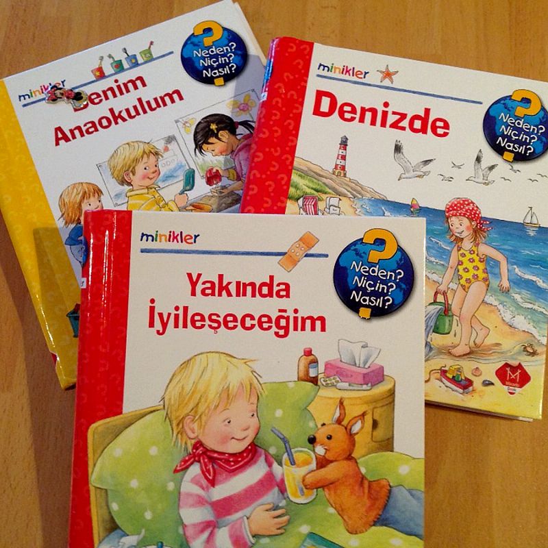 Mikado Çocuk´tan "Minikler için Neden? Niçin Nasıl? " serisi Ravensburger´in orjinallerinden çevrilmiş çok faydalı bir seri. Serinin ilk çıkanlarından almıştık biz, Masal 2,5-3 yaş civarındayken. O zaman seride 5 kitap vardı, Benim Anaokulum, Yakında İyileşeceğim, Denizde, Dinazorlar, Ben ve Sen. Bu seride Masal´ın en sevdikleri fotoğrafta yer alanlar, dinazorlu olanı almadım çok ilgisi olmadığı için dinazorlara ama dinazor seven çocuklar için güzel olabilir.
