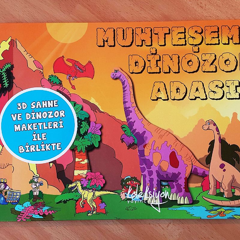 Dinozor seven çocukların kaçırmaması gereken bir kitaptan bahsedeceğim "Muhteşem Dinozor Adası" Koleksiyon Yayıncılıktan çıkmış 3 boyutlu bir kitap. Kitapta hem dinozorlarla ilgili bir hikaye hem de 3 boyutlu bir sahne ve üzerine kolayca kitaptan ayırıp yapmanız için dinozor maketleri var. 3 Yaş üzerine maketi siz yaparak oynatabilirsiniz, 4 yaş üzerine maketi de birlikte yaparak daha interaktif hale getirebilirsiniz.