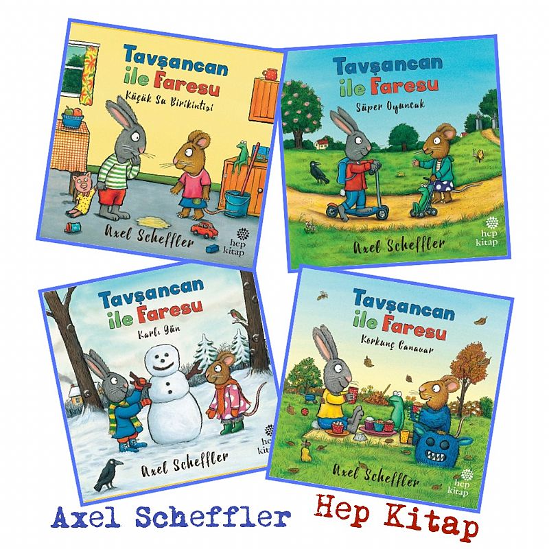 İsmini Julia Donaldson kitaplarından çok iyi bildiğimiz ünlü çizer Axel Scheffler´in yarattığı "Pip and Posy" serisi, yeni bir yayın evinden Hep Kitap´tan tan 4 kitaplık bir seri olarak "Tavşancan ve Faresu" ismi ile Türkçe´ye çevrildi. Her kitapta arkadaşlık, paylaşmak, özür dilemek, cesur olmak, tuvalet eğitimi gibi farklı bir konunun işlendiği ve az yazıları ve sevimli görselleri ile 2 yaş üstüne rahatça okunabilecek bu seriden benim favorim "Karlı Gün".