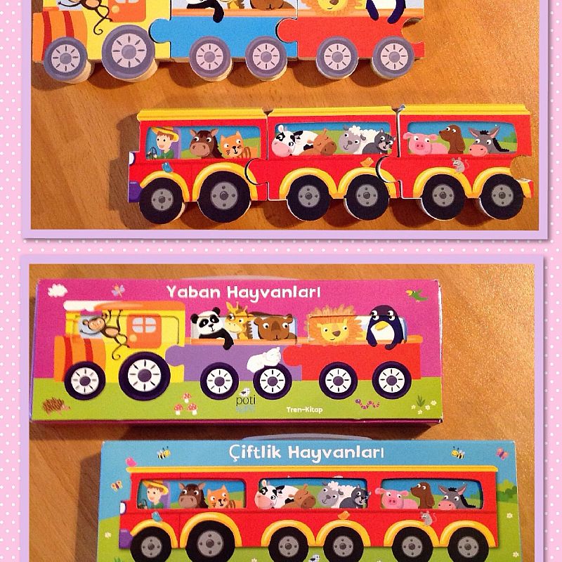 Bebek kitaplarında güzel ve değişik alternatif bulmak zor oluyor. Pötikare Yayıncılık´tan çıkan Çiftlik Hayvanları/Otobüs Kitap ve Yaban Hayvanları/ Tren Kitaplarını çok sevdim. Bir kutu çanta içinde birbirine yapboz gibi geçmeli üçer kitaptan oluşuyorlar.